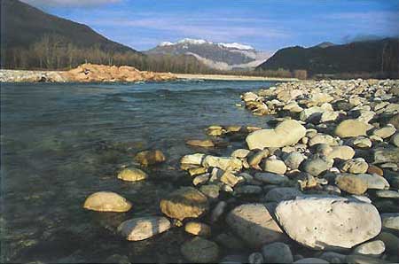Gefälle und Granulation sind mehr oder weniger homogen; der Kies liegt bei einem Durchschnittswert von 20-50 mm. |